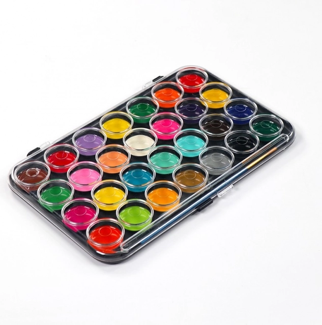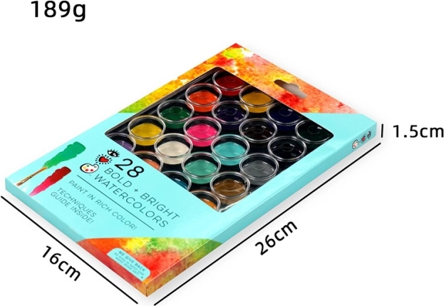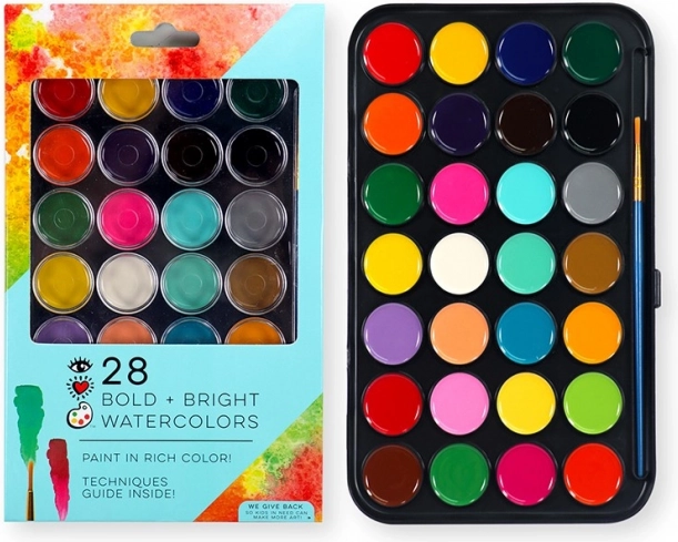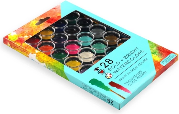 Découvrez d’innombrables possibilités de jeu avec les couleurs et créez vos propres œuvres originales. Ce coffret pratique et compact de 28 aquarelles aux teintes belles et vibrantes permet à chacun d’exprimer sa créativité. L’ensemble est rangé dans un étui en plastique qui protège les couleurs du dessèchement et en facilite l’usage au quotidien. Un pinceau et un guide succinct des techniques d’aquarelle sont inclus. Grâce à lui, chacun apprend à combiner les couleurs et à créer de nouvelles nuances. C’est un cadeau idéal pour les enfants, les amis et tous ceux qui aiment peindre.