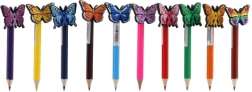 Chaque crayon est orné d'un papillon coloré, ajoutant un aspect joyeux et fonctionnel aux crayons.