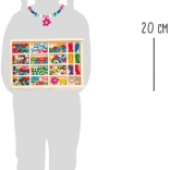 La boîte contient un large choix de formes et de couleurs qui inspirent une créativité sans limites. Grâce aux compartiments séparés, l’enfilage est clair et amusant – une activité parfaite à la maison comme en voyage.