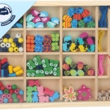 Chaque perle a sa place. La boîte en bois avec compartiments et couvercle transparent facilite le choix et le rangement, afin que rien ne se perde.