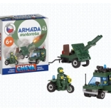 Le jeu de construction contient en tout 123 pièces, qui permettent de construire des éléments individuels comme un canon, une moto ou une voiture tout-terrain. Les enfants peuvent facilement changer les scénarios de jeu et impliquer leur imagination pour créer de nouvelles situations.