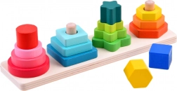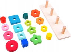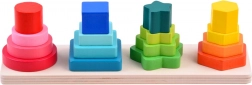 Quatre tiges avec des formes variées guident les enfants vers la reconnaissance et le tri des couleurs et des formes, développant ainsi la perception visuelle et la logique.