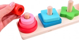 Découvrez un jeu logique en bois coloré qui développe la motricité fine, la pensée logique et la reconnaissance des formes et des couleurs. Les enfants empilent différentes formes sur quatre tiges selon leur imagination ou des consignes, entraînant la coordination œil-main, la concentration et la créativité. La fabrication en bois de qualité aux couleurs vives garantit un jeu sûr et amusant dès 3 ans.