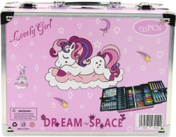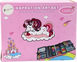 Set artistique dans une valise extensible.Set artistique dans une valise dépliable ornée d’un magnifique motif de licorne. C’est un cadeau idéal pour tout petit artiste, qui l’emmènera dans un monde de fantaisie et de créativité !