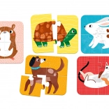 Ces puzzles amusants initient les enfants aux animaux de compagnie familiers. Chaque puzzle de quatre pièces représente un animal, ce qui favorise la motricité fine et l’attention.