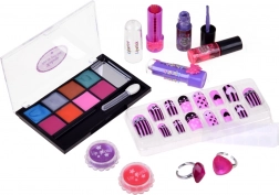 Le set comprend tout pour une transformation complète : ombres crémeuses avec applicateur, gloss et rouges à lèvres pailletés, vernis à ongles, capsules autocollantes aux motifs prêts à l’emploi et adorables bagues en forme de cœur. Jouer avec la cosmétique développe la motricité fine, le sens des couleurs et favorise l’expression de soi.
