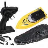 - Bateau RC 2-en-1 avec coque amovible tête de crocodile