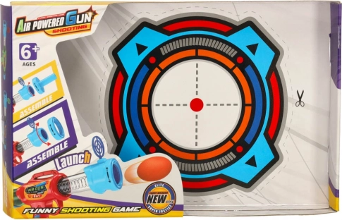 La manipulation est intuitive : il suffit de charger par l’avant du canon et c’est prêt. Un cible en papier à découper est incluse pour s’entraîner à la précision, organiser de mini-tournois et développer de manière non violente la coordination œil‑main, les réflexes et l’esprit de compétition.
