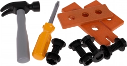 Le marteau, le tournevis, les vis, les plaquettes percées et d’autres accessoires ouvrent la voie à la construction libre, à l’entraînement de la motricité fine et au développement de l’imagination.
