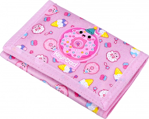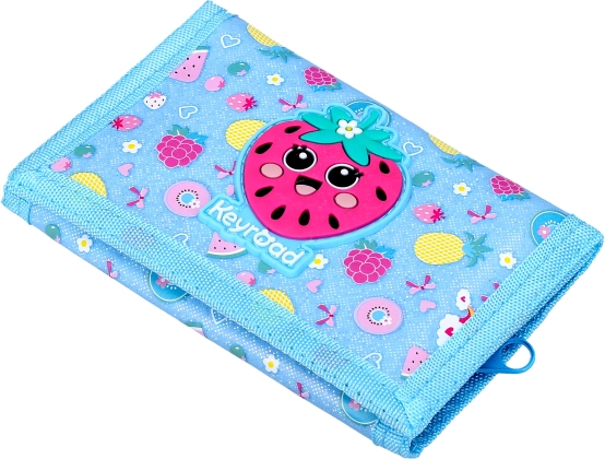 Le portefeuille élégant pour fille Keyroad en tissu résistant séduit par ses motifs colorés et sa conception pratique. Il dispose d’une fermeture velcro fiable, de dimensions compactes pour les petites mains et est disponible en 3 designs joyeux – fraise, donut et petit lapin.