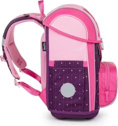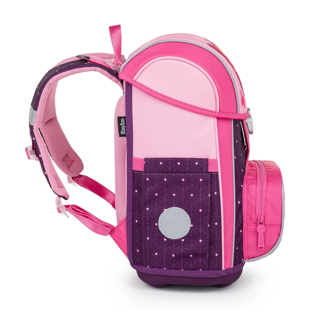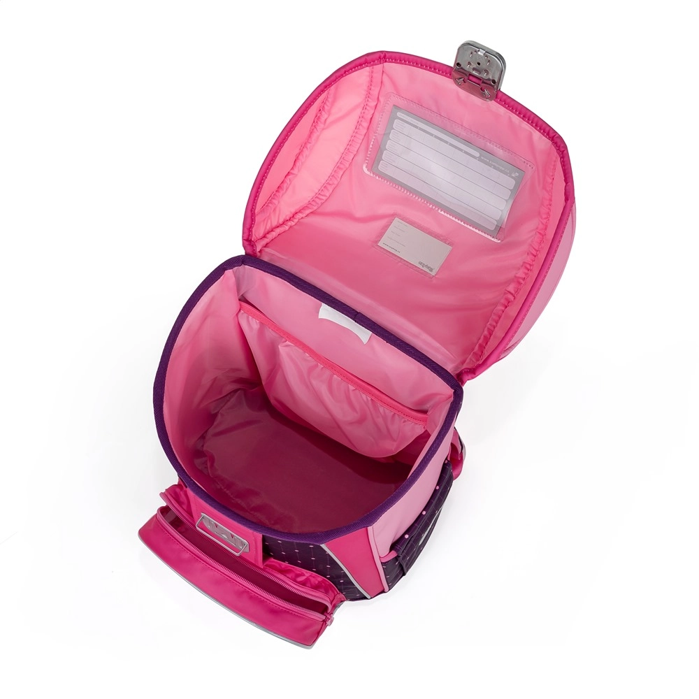 Des éléments réfléchissants disposés à plusieurs endroits du cartable améliorent la visibilité de l’enfant sur le trajet de l’école. La fermeture est assurée par une boucle de sécurité.
