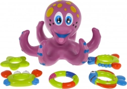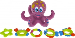 Ce jouet de bain coloré transforme chaque bain en un moment de jeu joyeux. La pieuvre violette souriante et ses cinq anneaux amovibles en forme de crabe, poisson, écrevisse, étoile et anneau invitent les enfants à explorer et à exercer leurs compétences. Le plastique souple est agréable en main et doux pour la peau délicate des enfants.
