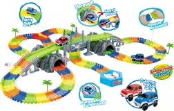 Piste de course Flexi avec deux tunnels et 2 voitures