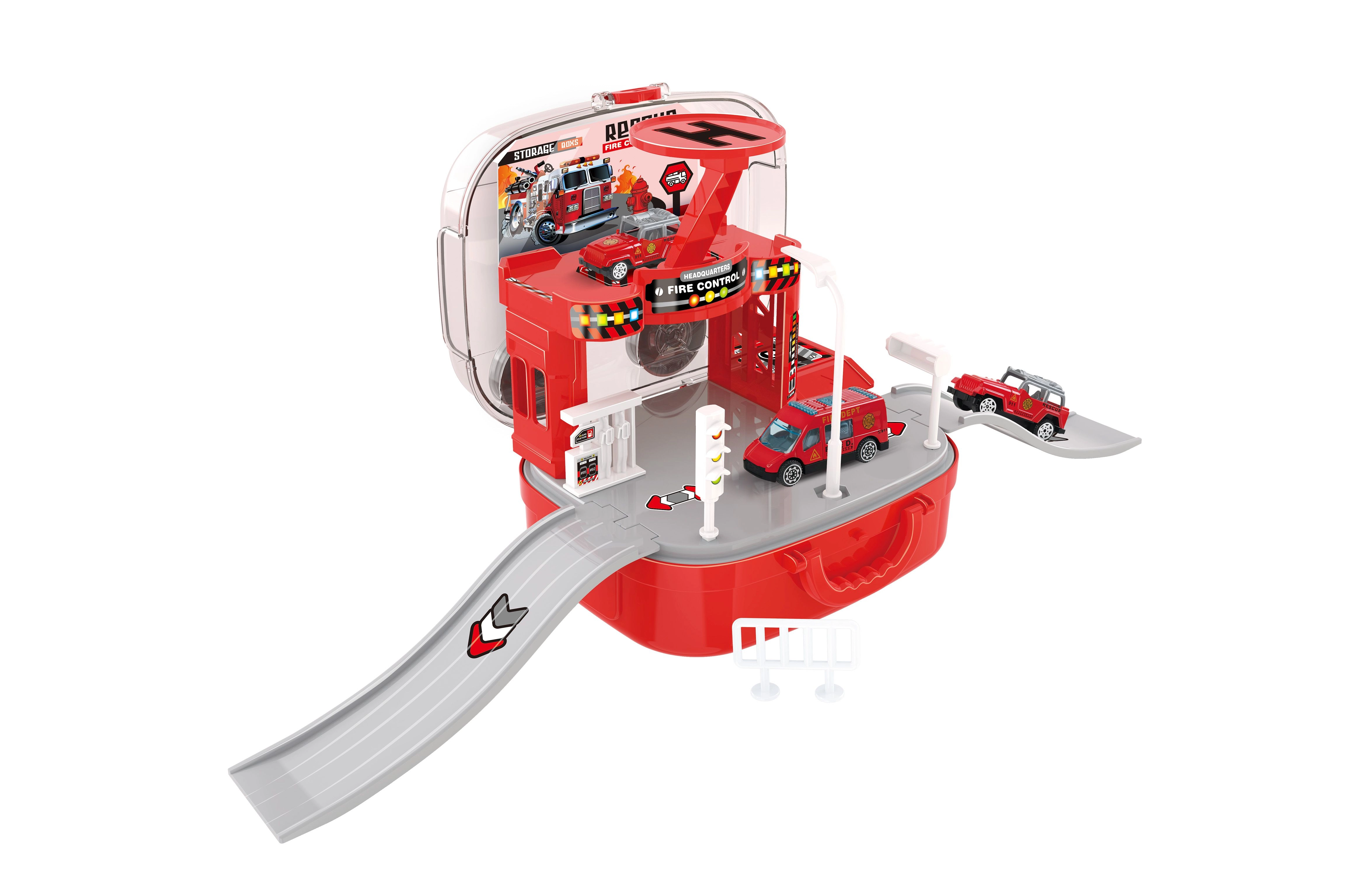Cette caserne de pompiers en valise ingénieuse ravira les petits amoureux des secouristes. Les enfants peuvent créer leurs propres interventions, déplacer les véhicules entre les étages grâce à l’ascenseur manuel et déployer l’hélicoptère pour des missions rapides. Grâce à la valise pratique, l’ensemble se referme et se transporte facilement après le jeu.