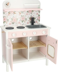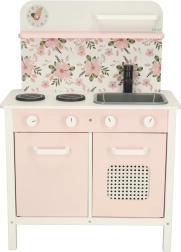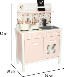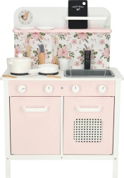 La combinaison de la douce couleur rose et des motifs floraux fait de cette cuisine non seulement un jouet, mais aussi un bel élément décoratif.