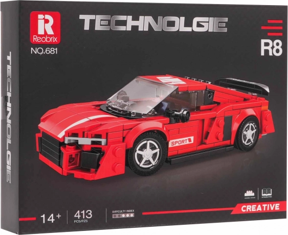 Construisez votre propre voiture de sport à partir de 413 pièces avec des détails réalistes et des fenêtres transparentes. Idéal pour les jeunes constructeurs à partir de 14 ans, avec un manuel illustré et des autocollants pour la finition. Un divertissement qui développe la déxtérité manuelle, la représentation spatiale et la patience.