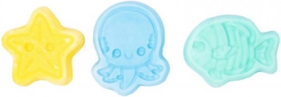 Le kit comprend des moules aux motifs étoile de mer, pieuvre et poisson. Ils permettent de créer des savons joliment détaillés sur le thème de la mer.