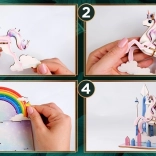 Le modèle licorne se distingue par ses couleurs vives et son aspect décoratif – parfait à exposer une fois assemblé.