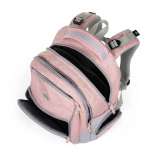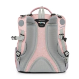 La disposition pratique comprend deux poches internes pour les manuels et cahiers, de nombreuses petites poches pour les affaires, deux poches latérales (une zippée et une ouverte) et des crochets supplémentaires pour fixer des sangles plus longues. Les éléments réfléchissants augmentent la visibilité de l’enfant sur le chemin de l’école et du retour.