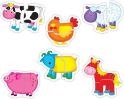 Premier puzzle pour les tout-petits avec des animaux de la ferme. 6 paires à contours en pièces solides d’une épaisseur de 3 mm, faciles à saisir et favorisant la motricité fine, la coordination œil–main et l’orientation spatiale. La taille approximative d’un puzzle est de 16 × 12 cm, idéale pour les petites mains. Convient aux enfants à partir de 18 mois.