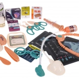 L'ensemble contient divers outils médicaux tels que stéthoscope, thermomètre, miroir dentaire et plus encore.