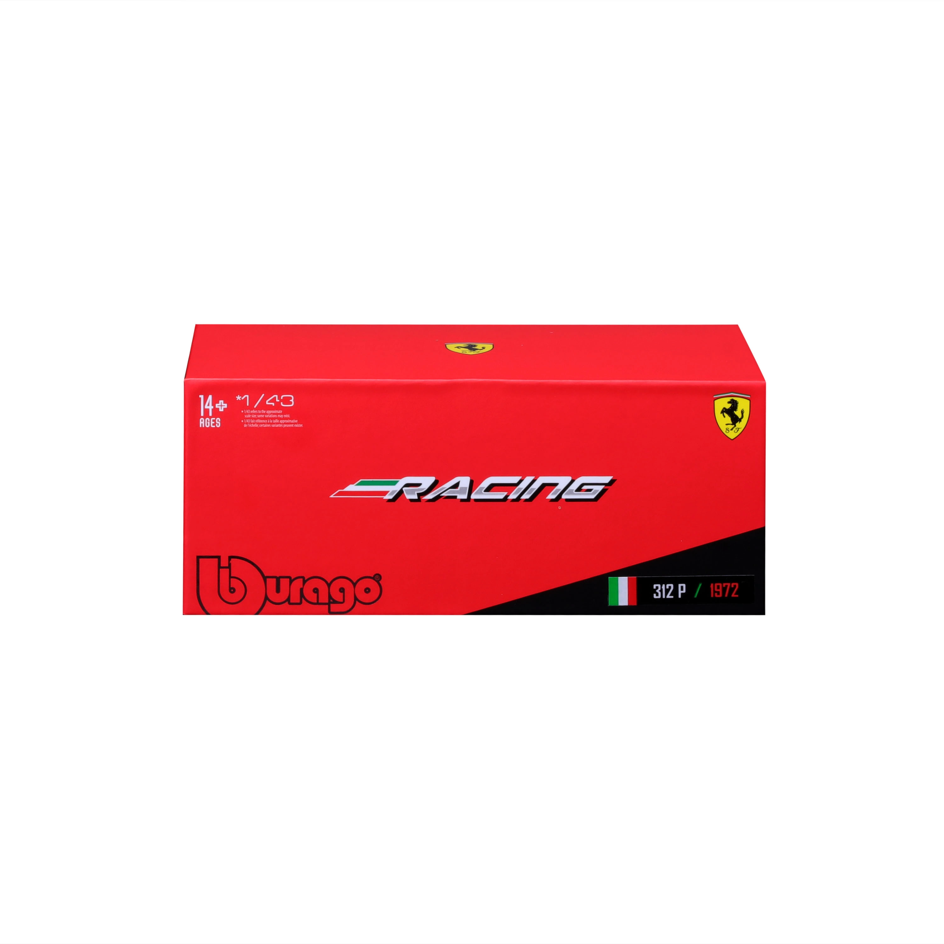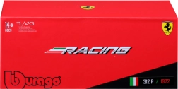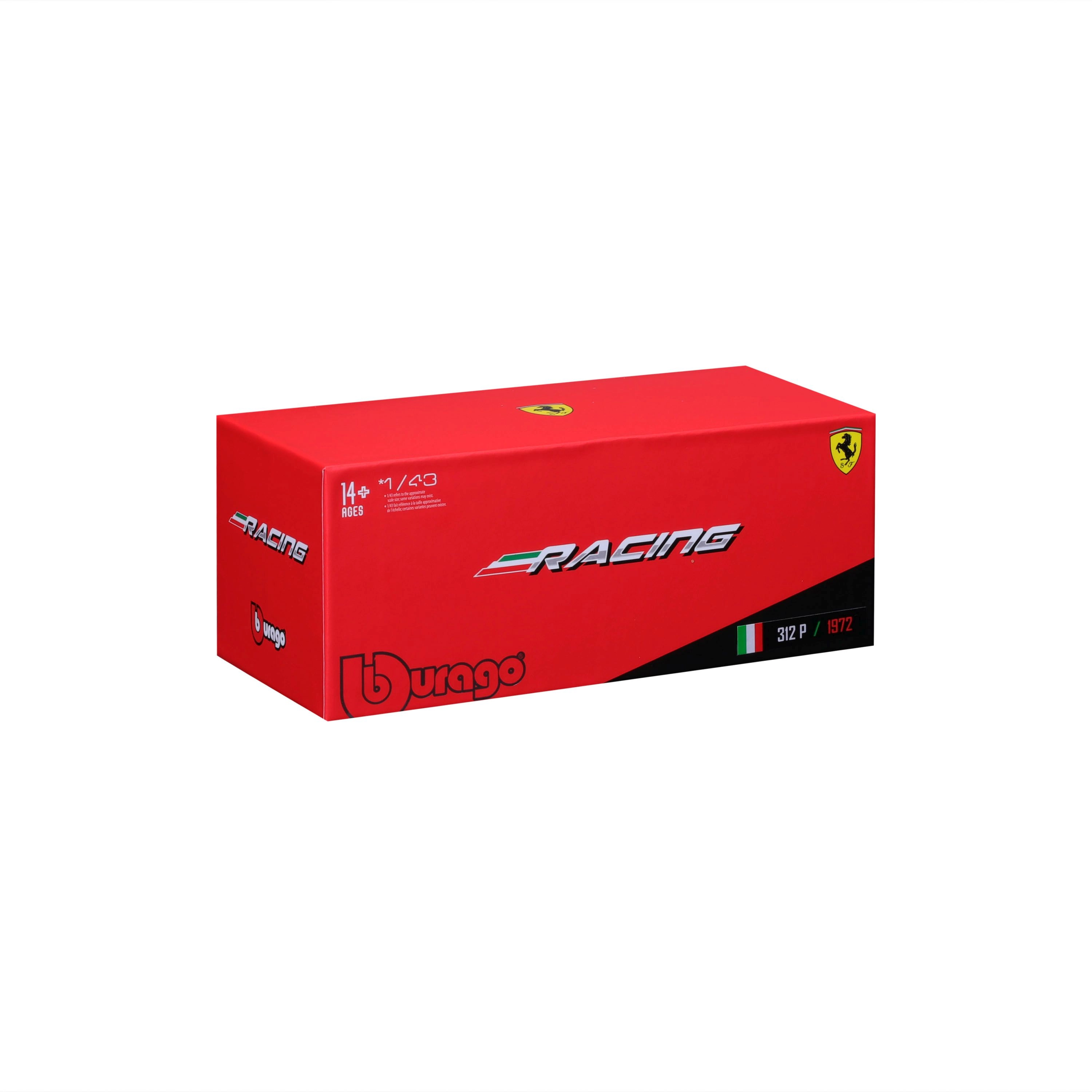 Boîte attrayante avec le logo Ferrari et le modèle 312 P/Ferrari Racing, prête à être offerte et à conserver le modèle en toute sécurité.
