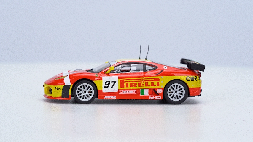 Livrée Pirelli précise, numéro de départ 97, aile réaliste, rétroviseurs et vitres transparentes avec vue sur l’intérieur pour une fidélité maximale à l’original.