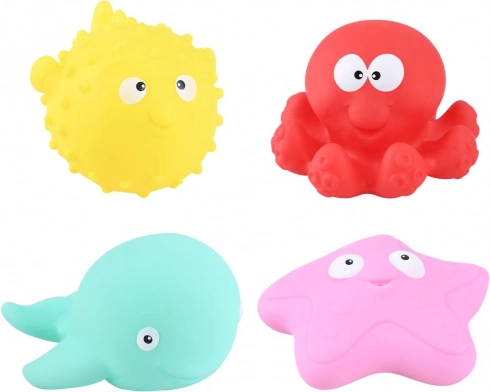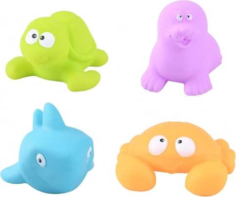 Lot de 4 animaux de bain amusants de 8 cm. Deux variantes de motifs, idéales pour la baignoire et la petite piscine des enfants. Un super jouet pour le plaisir du bain.