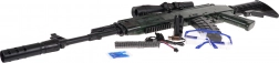 Comme munitions, utilisez des billes en hydrogel (diamètre recommandé env. 7–8 mm) que vous laissez simplement gonfler dans l’eau pendant 4–6 heures avant utilisation. Une fois hydratées, égouttez l’eau et jouez. Les billes éclatent en toute sécurité à l’impact, ce qui les rend adaptées à un usage récréatif. L’emballage comprend de nombreux accessoires : canon, silencieux, chargeur, crosse, lunette, ainsi qu’une batterie 7,4 V avec charge USB et des lunettes de protection.