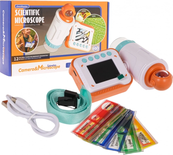 Découvrez le monde de la microscopie avec notre télescope 2 en 1 et caméra, conçu pour les enfants dès 3 ans. Appareil léger et portable permettant de prendre des photos et des vidéos en haute résolution et d’examiner des objets jusqu’à 1000 fois agrandis.