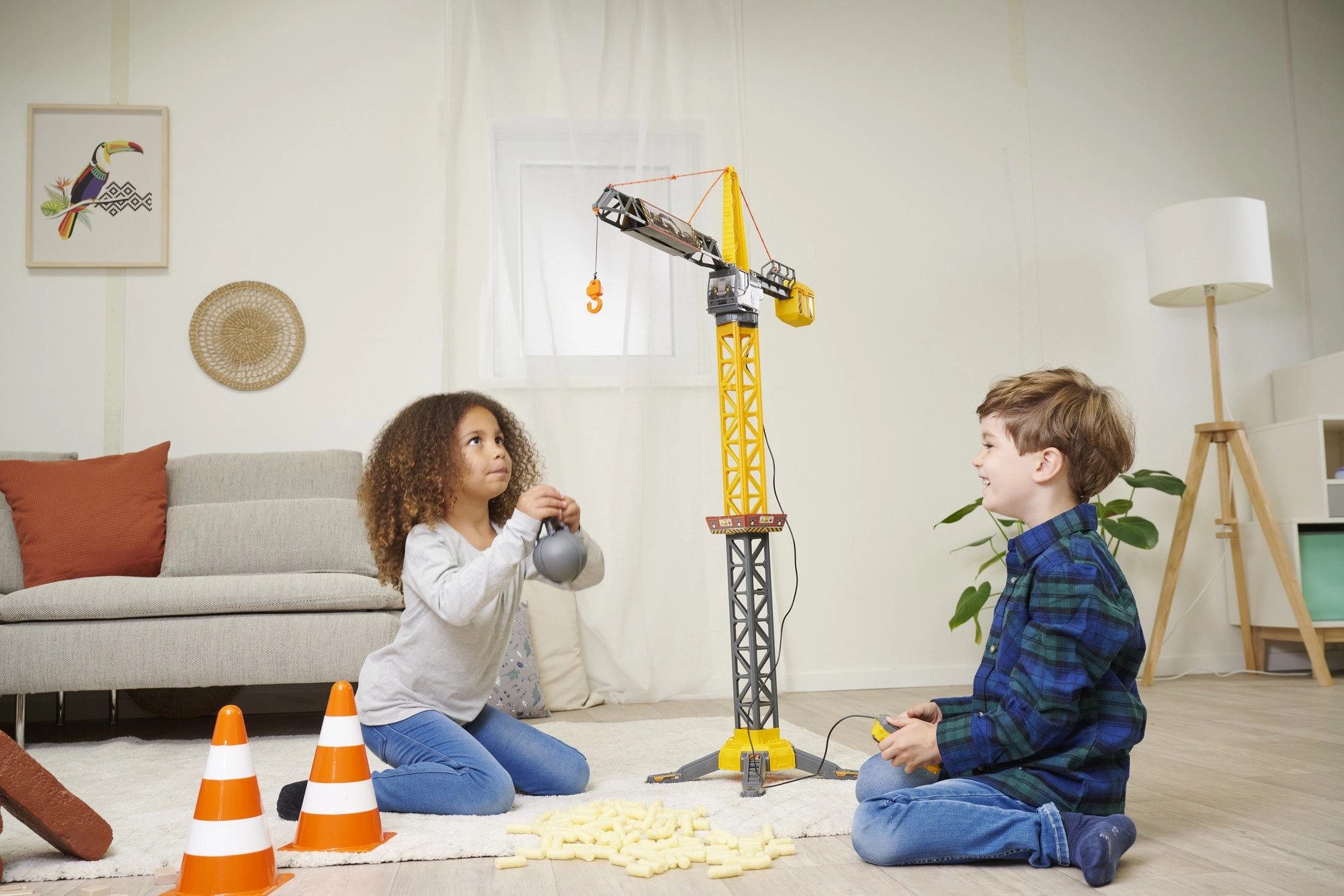 La grue permet une rotation fluide à 360°, afin de déplacer facilement la charge tout autour de la base. Idéale pour jouer au véritable chantier et réaliser des manœuvres précises.
