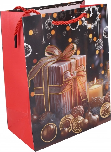 Sac cadeau de Noël M 26 × 32 × 10 cm en 4 variantes. Construction solide, design festif et dimensions pratiques pour un emballage de cadeaux élégant.