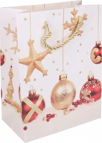 Sac-cadeau de Noël M 26 × 32 × 10 cm en 4 designs. Solide, élégant et idéal pour un emballage rapide des cadeaux. Anse pratique, finition de qualité.