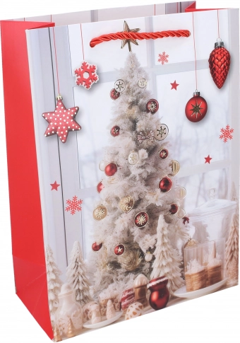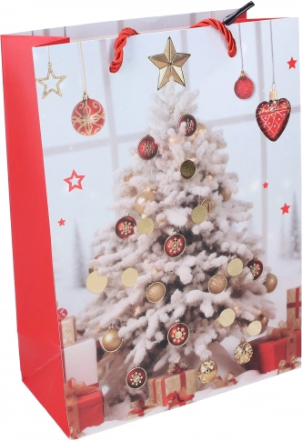 Sac cadeau de dimensions 26×32×10 cm est un choix parfait pour emballer les cadeaux de Noël. Son motif de Noël élégant et son matériau en papier robuste apportent une touche de magie à vos présents.