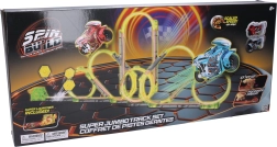 Piste super Spin and Build avec deux motos apporte un divertissement passionnant pour les petits et grands coureurs. Avec des détails comme un dispositif de lancement et une longue portée des motos, ce jouet repousse les limites des courses à adrénaline.