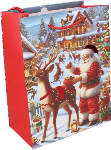 Sac cadeau élégant taille L aux dimensions 32 × 41,5 × 12 cm, idéal pour emballer des cadeaux plus volumineux. Il offre un motif de Noël, une construction robuste et un transport facile. Disponible en 4 variantes de motifs pour une atmosphère festive parfaite.