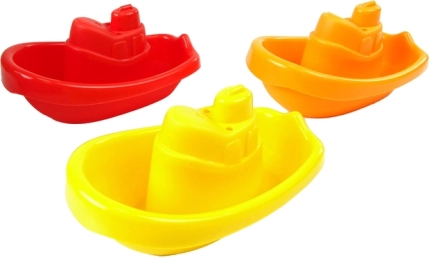 Trois petits bateaux colorés, idéaux pour jouer dans la baignoire, garantissent des navigations amusantes et stimulent l’imagination.