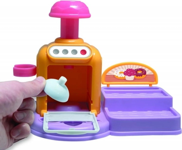 Porte ouvrante, boutons et levier font de la « cuisson » un rituel amusant. Place le gâteau, appuie et observe la transformation en délicieuse création en pâte à modeler.