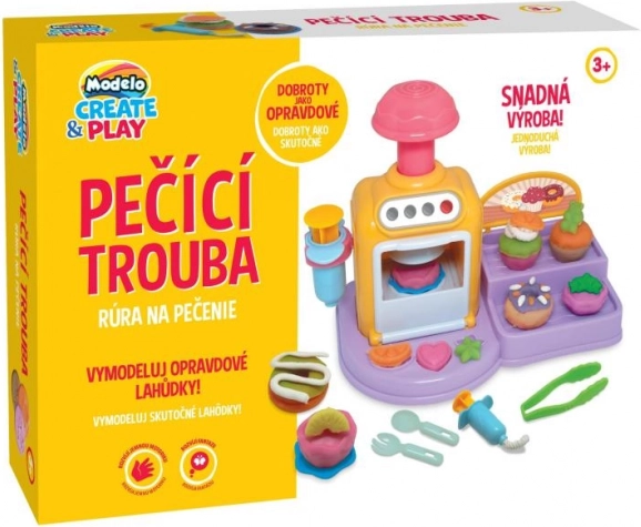 Ce kit ludique combine pâte à modeler, moules et un mini « four » qui, en appuyant sur le levier, extrude et « cuit » vos créations. Les enfants peuvent modeler la pâte, former des fleurs, des animaux ou des feuilles et décorer des cupcakes comme dans une vraie pâtisserie. Les couleurs vives et la simplicité d’utilisation encouragent le jeu créatif, la motricité fine et le jeu de rôle.
