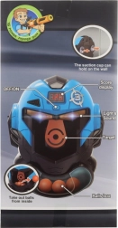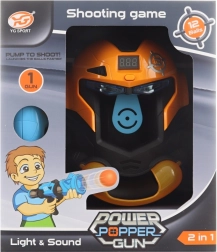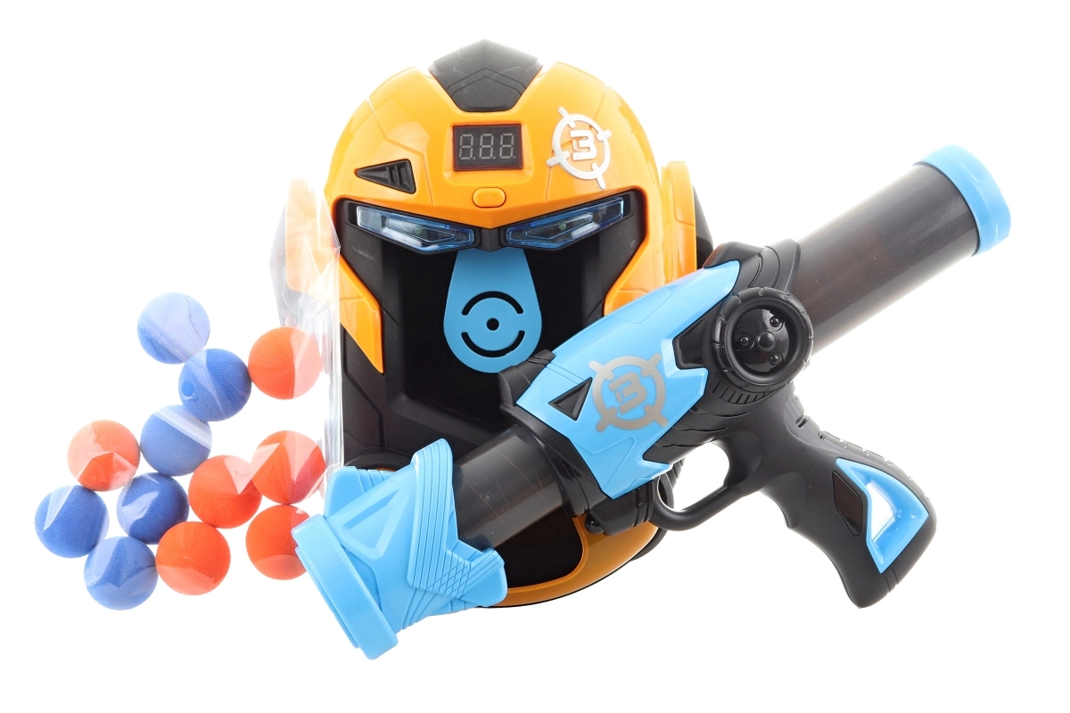 Ensemble sophistiqué comprenant un pistolet à balles en mousse et une cible en forme de masque. La cible dispose d’un compteur alimenté par piles (2x AA – non incluses). Après insertion des piles et lorsqu’un tir atteint la cible, le compteur ajoute des points et émet des sons. Matière : plastique. Emballé en boîte. Dimensions de l’emballage : environ 25 x 29 x 14 cm. Âge : 8+