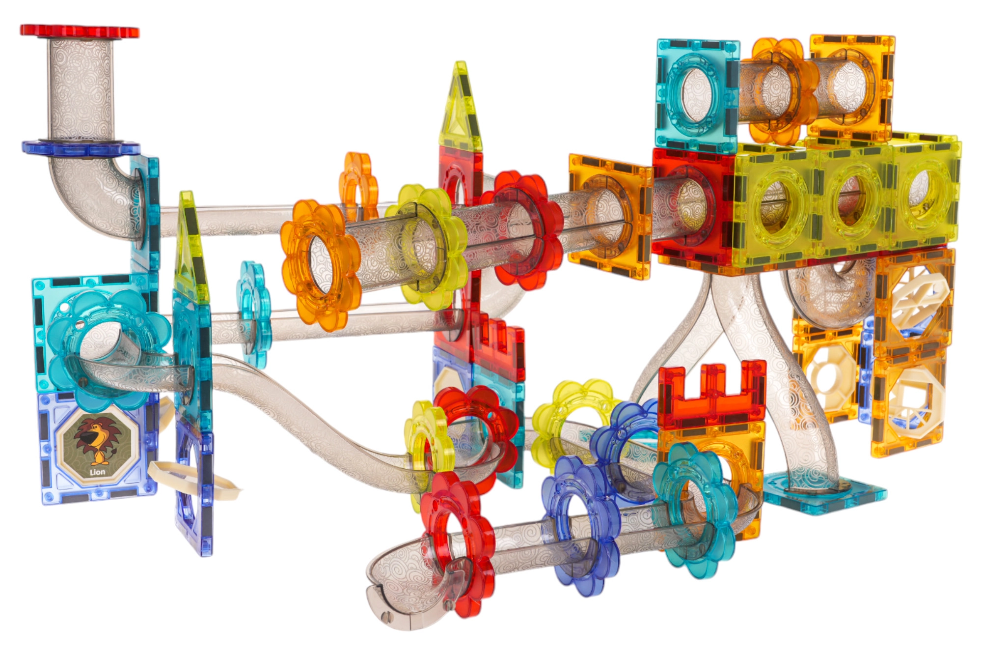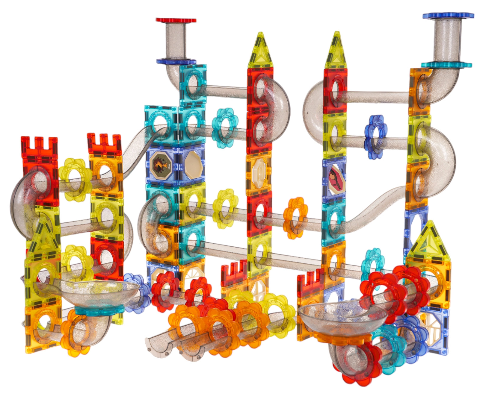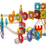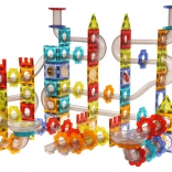 - Développement de la créativité : Le set comprend au total 228 pièces de différentes formes et couleurs, y compris des pièces transparentes, des billes magnétiques, des tunnels et de nombreux autres accessoires. Le tout stimule la créativité et l’imagination des enfants.