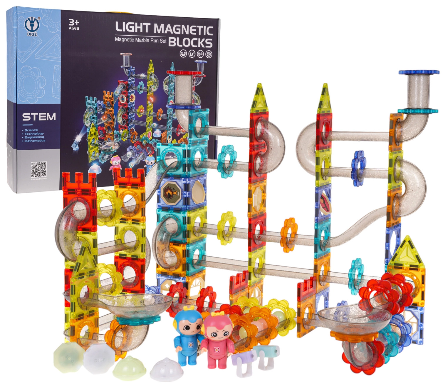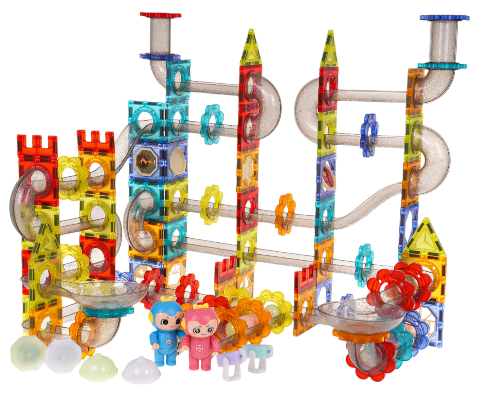 - Développement des compétences : La combinaison de blocs magnétiques et de la piste à billes développe la motricité fine, l’orientation spatiale et la compréhension des principes physiques.