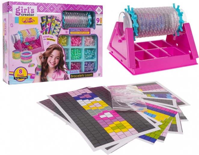 Kit créatif de fabrication de bracelets avec métier pour enfants dès 5 ans. 540 perles en 9 couleurs, 8 modèles et de nombreux accessoires. Développe la motricité et l’imagination.
