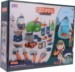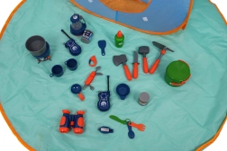 Avec 29 pièces, l’ensemble comprend tout le nécessaire pour un jeu de camping amusant, y compris réchaud, lampe et vaisselle.