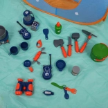 La tente et les accessoires sont fabriqués avec des matériaux de haute qualité qui garantissent la sécurité et la durabilité. Les talkies-walkies, la lampe de camping et le réchaud avec sons et lumières réalistes renforcent le plaisir du jeu de rôle.
