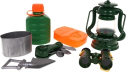 Notre Kit du petit explorateur est idéal pour les enfants curieux en quête d’aventures. Le kit contient des accessoires indispensables tels qu’une lampe, des jumelles, un instrument inconnu, une gourde, des récipients pour la nourriture et une pelle. La lampe est alimentée par 3 piles de type AG13, incluses dans l’emballage, offrant un éclairage suffisant.