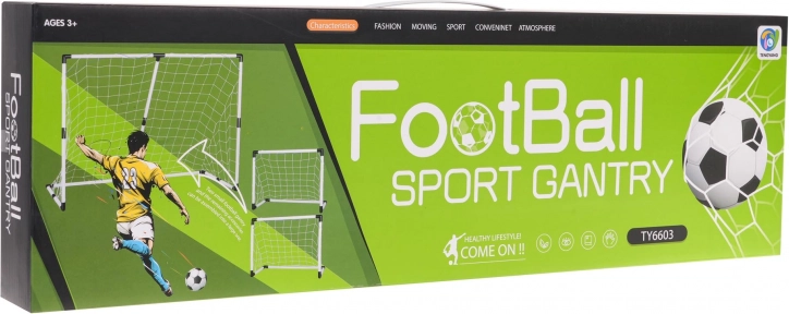 - grand but env. 143 cm x 110 cm x 70 cm, .- petit but env. 74 cm x 56 cm x 35 cm, .- ballon gonflable env. 13 cm, .- boîte env. 66,5 cm x 20,5 cm x 7 cm, . |