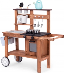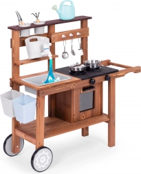 Cette cuisine pour enfants robuste allie le plaisir du jeu de rôle à la découverte de la nature. Grâce au bois de sapin résistant, elle est idéale à l’intérieur comme à l’extérieur. Les enfants peuvent « cuisiner » avec du sable, de la boue et des cailloux, remplir l’évier d’eau et « régler la température » à l’aide des boutons rotatifs.