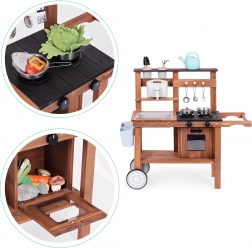 Le réservoir au-dessus de l’évier et le robinet fonctionnel permettent aux enfants de remplir d’eau et de rincer les « ingrédients » comme dans une vraie cuisine – idéal pour jouer dehors comme dedans.