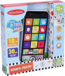 Amusant smartphone interactif pour les tout-petits, imite un véritable téléphone tactile et développe les sens ainsi que la motricité. Il offre des effets lumineux et sonores, 10 boutons avec sons d’animaux, 6 boutons musicaux et d’effets et un mode jeu de clavier. Il s’éteint automatiquement après 30 secondes pour économiser la batterie.